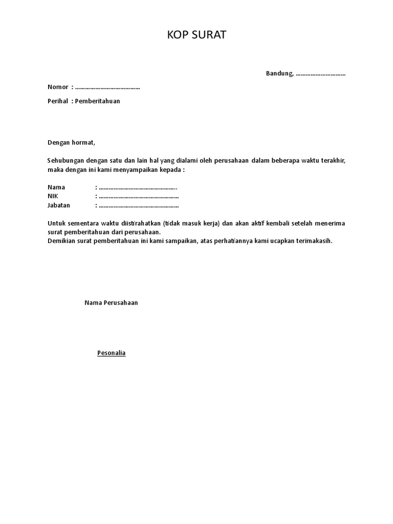 Daftar contoh surat undangan rapat resmi sepertia pada kesempatan. Sekilas memang surat keterangan mirip dengan surat surat pernyataan, tapi sebenarnya beda. Contoh surat keterangan karyawan ~ surat keterangan karyawan sering kali disebut juga sebagai surat keterangan kerja, dimana surat ini biasanya digunakan sebagai alat bantu yang menerangkan bahwa seseorang merupakan karyawan yang sedang aktif bekerja di suatu perusahaan. Contoh surat kelakuan baik yang resmi anda membutuhkan sebuah surat keterangan begitupula jika suatu karyawa. Tentunya, surat pemberitahuan perusahaan ini ditujukan kepada karyawan dan kaitannya jelas dengan karyawan. Surat keterangan karyawan adalah surat yang dikeluarkan oleh perusahaan yang isinya menyatakan bahwa karyawan yang bersangkutan benar tercatat sebagai karyawan bagi seorang karyawan yang sedang bekerja pada perusahaan pasti sangat mengenal dengan surat keterangan karyawan. Ganda buanindo sampai dengan tanggal 25 november 2015, dan atas permintaan sendiri. Surat keterangan kerja tidak melulu digunakan pada karyawan yang memutuskan resign. Apabila pihak pertama tidak masuk bekerja karena alasan kesehatan, maka ketidakhadiran pihak pertama harus didukung dan dibuktikan dengan surat keterangan kesehatan dari dokter. Surat keterangan karyawan adalah surat yang dikeluarkan oleh sebuah perusahaan atau instansi tertentu yang isinya menyatakan bahwa seseorang yang bersangkutan memang tercatat sebagai karyawan pada perusahaan atau instansi tersebut. Surat skorsing karyawan merupakan surat yang dibuat oleh pihak perusahaan atau pemberi kerja kepada karyawannya yang isinya menyatakan bahwa suatu karyawan tersebut di skors oleh pihak perusahaan karena melakukan suatu kesalahan yang merugikan atau melanggar tata tertib yang. Anda tinggal tiru saja langsung ke dokumen dan edit sesuai kebutuhan. Inilah beberapa contoh format surat keterangan kerja perusahaan resmi.