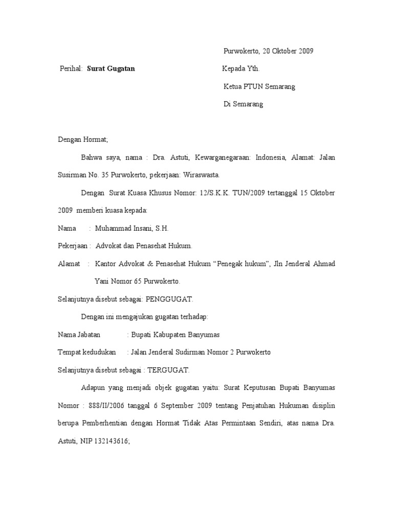 Menulis surat untuk orang tua tentu akan memakai bahasa lebih formal dan santun, berbeda dengan menulis surat untuk teman atau teman. Contoh surat kuasa khusus ptun. Mewakili sebagai tergugat dalam perkara nomor :……/pdt.g/2012/pn……….melawan demikian uraian penjelasan tentang surat kuasa khusus yang telah kami bagikan pada kalian. Tidak menutup kemungkinan jika dalam waktu waktu tertentu kita pernah 2. Ptun adalah singkatan dari peradilan tata usaha negara yang berada dibawah mahkamah agung, serta bertugas melaksanakan kekuasaan kehakiman untuk rakyat sebagai pencari keadilan yang berkaitan dengan sengketa tata.