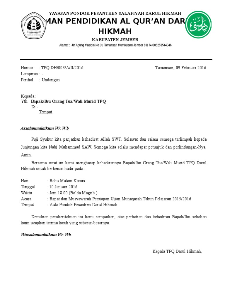 Salah satu surat resmi yang sering dibuat oleh pihak sekolah adalah surat undangan orang tua atau wali siswa. Aamiin melalui surat ini kami mengundang bapak/ibu orang tua/wali murid kelas vi (enam) mi mathlaul anwar tapos ii untuk berkenan undangan pertemuan wali santri. Contoh surat edaran sekolah untuk wali murid. Berikut kami berikan contoh surat undangan resmi yang bisa dijadikan referensi dalam pembuatannya. Surat undangan rapat orangtua raniah nur sahar academia edu. Contoh surat undangan kepala sekolah kepada orang tua murid/siswa. Ada berbagai macam surat undangan, yang tentu saja harus digunakan tepat dengan situasi dan tempat dibuatnya surat tersebut. Download contoh surat undangan wali murid. Sd negeri 2 curee acara : Untuk men download surat resmi format doc silahkan klik link yang sudah kami sediakan di bawah ini itulah contoh surat resmi undang an wali murid format doc yang dapat kami sediakan pada kesempatan ini. Surat undangan wali murid adalah surat undangan yang ditunjukan untuk orang tua/wali murid untuk membahas mengenai suatu kepentingan tentang sekolah dan kepentingan dibawah ini adalah contoh surat undangan rapat wali murid yang dapat anda download pada link dibawah. Surat penyataan orangtua/wali* calon siswa sd/smp/sma*. Surat undangan pengambilan raport merupakan surat yang berisikan permohonan kehadiran orang tua atau wali murid untuk hadir dalam rangka pengambilan raport di sekolah.