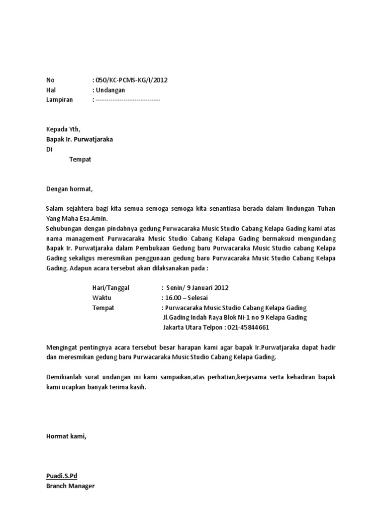 Dalam rangka pembukaan kantor cabang tersebut saudara juga dapat membuat serangkaian agenda promosi serta pengurusan izin kantor cabang pt. Ada berbagai contoh surat undangan dengan berbagai jenis kegiatan seperti surat undangan rapat, pernikahan, reuni, dan sebagainya. Berkaitan dengan segera diadakannya acara pembukaan kantor cabang baru, maka kami mengundang seluruh manajer pt dua permata untuk hadir dalam rapat persiapan yang akan. Contoh surat undangan peresmian cabang baru. Saya berharap untuk anda datang pada acara syukuran rumah baru saya minggu depan. Penyampaian susunan pengurus rt yang baru. Savesave contoh surat undangan rapat for later. Nah berikut ini jatikom akan berikan contoh surat rapat yang baik dan benar. Contoh surat undangan rapat gereja. Secara umum fungsi surat undangan adalah sebagaimana tercermin dalam rumusan pengertiannya yaitu sebagai alat komunikasi tertulis untuk menyampaikan pesan atau informasi. Dalam pelaksanaan suatu kegiatan rapat, kita tidak bisa begitu saja mengadakannya tanpa suatu. Surat undangan resmi merupakan surat undangan yang dibuat oleh instansi atau perusahaan untuk kegiatan yang formal seperti undangan rapat setelah anda tahu tentang seluk beluk surat undangan, berikut kami lampirkan kepada anda beberpa contoh surat undangan yang dapat anda. Perlu diingat dalam pembuatan surat undangan harus lengkap dari kop surat hingga bagian akhir supaya pihak yang diundang paham makna undangan tersebut dan merasa penting untuk dipsy syahroni.